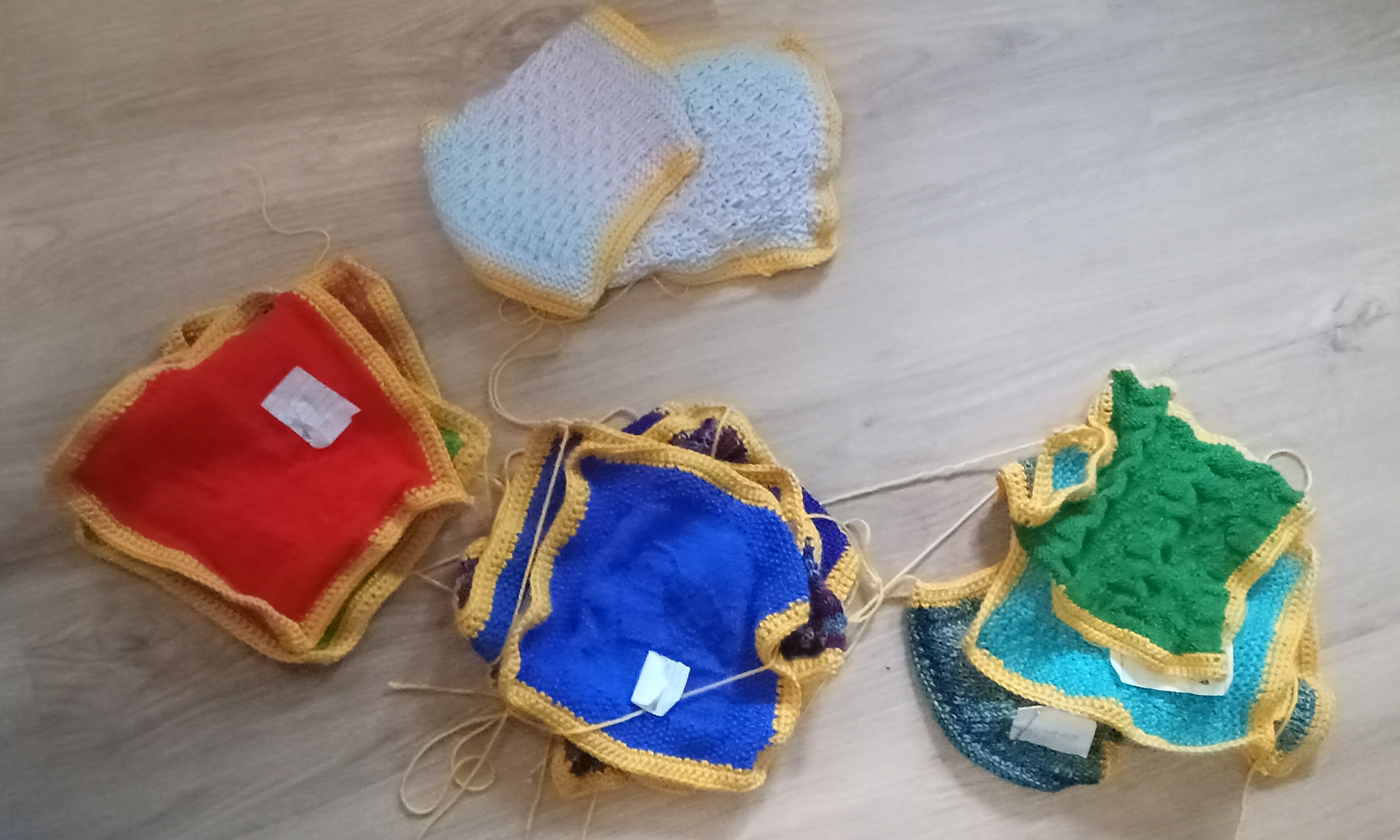 Finally, I could try arranging them. First I divided the squares into colour families: